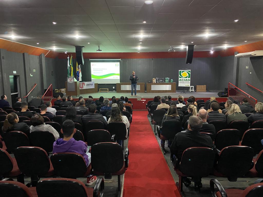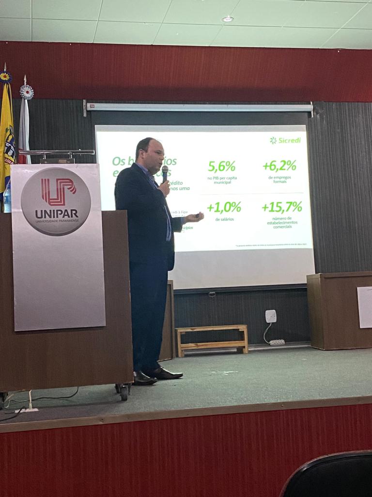 O especialista em investimentos do Sicredi, Felipe Campos Iturriet Albaini, ministrou duas palestras esta semana na região. Em Guaíra a parceria foi viabilizada entre Sicredi Aliança PR/SP, Associação Comercial e Empresarial (Aciag), Conselho da Mulher Empresária de Guaíra e Unipar (Comeg), no Auditório da Unipar na noite de terça-feira (9). Em Marechal Cândido Rondon, o evento aconteceu em parceria com a Associação Comercial e Empresarial de Marechal Cândido Rondon (Acimacar) na manhã desta quarta-feira (10) no auditório da entidade.