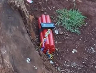 O material então foi abandonado no encontro entre as ruas Visconde de Guarapuava com a Tuiuti, no Bairro Cancelli, próximo a um tronco de árvore, cortado. De cor vermelha, o objeto aparenta ter um relógio na parte superior.
