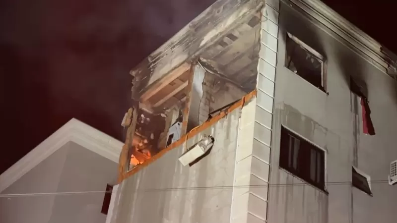 A força da explosão causou grande destruição. Janelas foram arremessadas a metros de distância, estruturas foram arrancadas e parte da parede do apartamento ficou completamente destruída. Destroços ficaram espalhados pela área externa do condomínio. Imagens registradas no local mostram que ainda havia fogo no interior do imóvel instantes após o ocorrido.