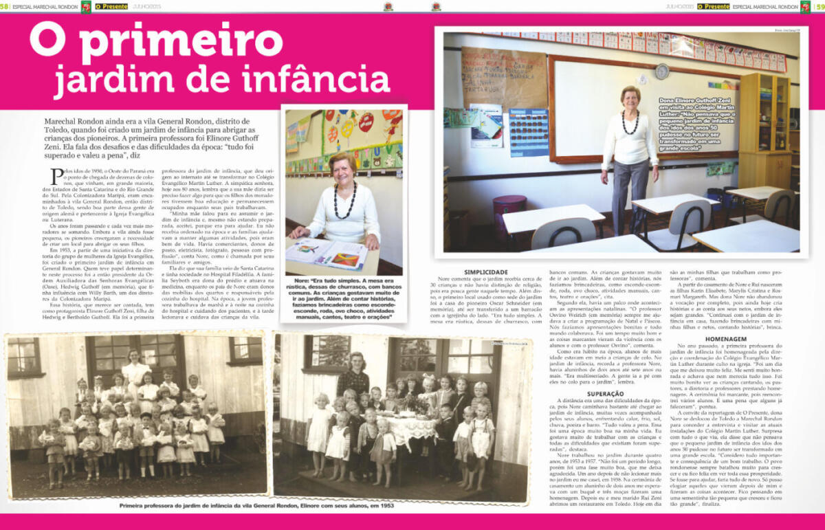 Em 1953, a partir de uma iniciativa da diretoria do grupo de mulheres da Igreja Evangélica, foi criado o primeiro jardim de infância em General Rondon. Quem teve papel determinante neste processo foi então a presidente da Ordem Auxiliadora das Senhoras Evangélicas (OASE), Hedwig Guthoff (em memória) (mãe de Elinore), que tinha influência com Willy Barth, um dos diretores da Colonizadora Maripá.