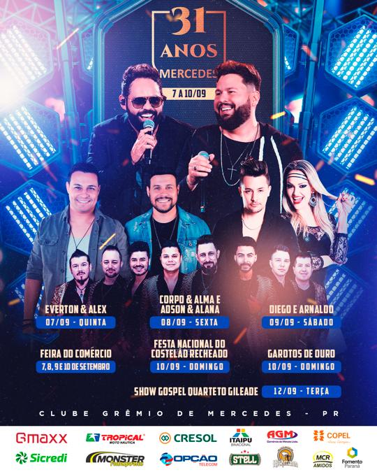 O prefeito Laerton Weber demonstra grande entusiasmo em relação às celebrações. “Estamos preparando tudo com o máximo de atenção e cuidado para garantir que tenhamos uma festa memorável. A estrutura é gigante. Independentemente do tempo, com sol ou chuva, estamos preparados para recepcionar bem as pessoas de Mercedes e da região”, destaca.