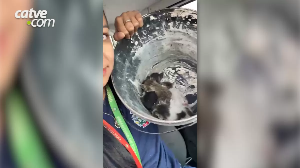 A equipe da Proteção Animal da Prefeitura foi informada que uma mulher realizava o corte de grama, quando encontrou os animais dentro de um balde. O local é conhecido por situações de abandono e não tem câmeras de segurança.