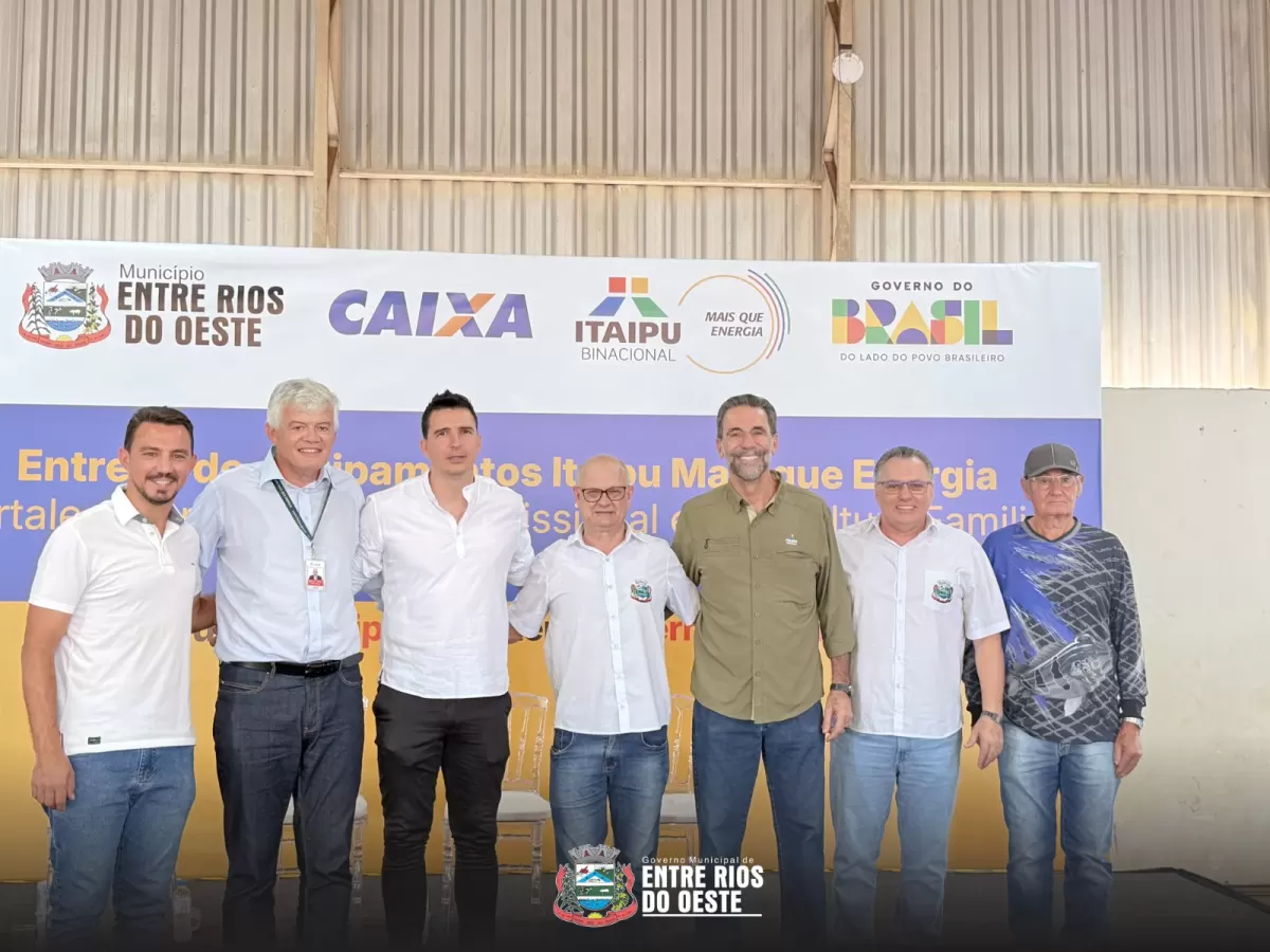 A Associação dos Pescadores e Aquicultores de Entre Rios do Oeste (APOER) recebeu mais de R$ 232.400,00 em materiais diversos, incluindo equipamentos de apoio logístico, móveis e cadeiras para escritório, máquinas para agroindústria e equipamentos de informática. O município, por sua vez, será contemplado com R$ 800.000,00 para a implantação de uma mini estação de tratamento de efluentes, visando a melhoria do Parque de Lazer (praia artificial).