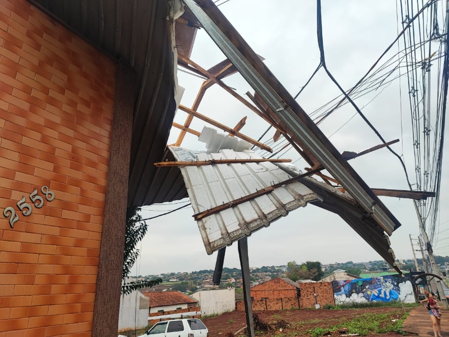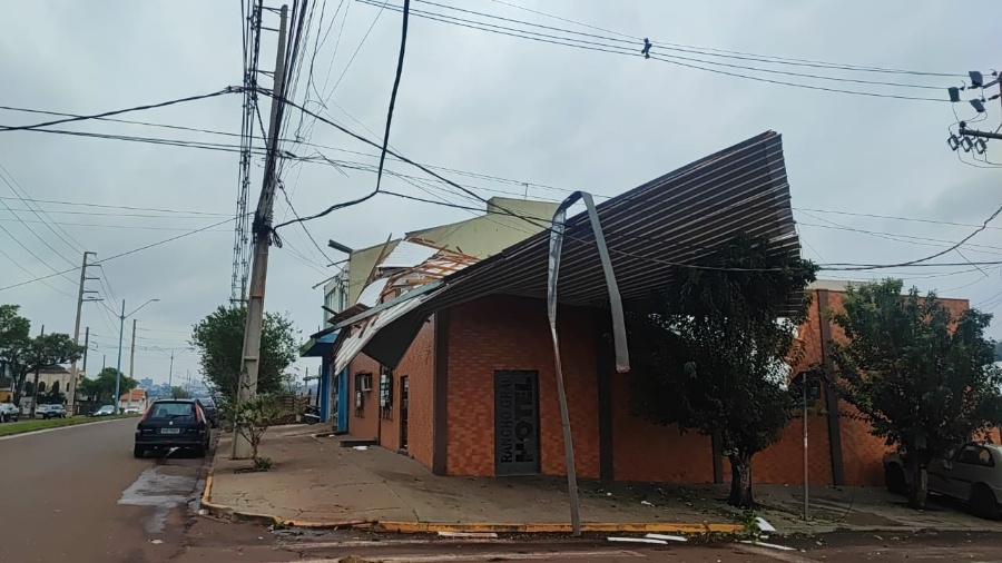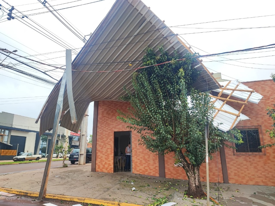 A cena mais impactante foi no Supermercado Allmayer, a fachada caiu em cima de alguns veículos que estavam no estacionamento. Na unidade industrial da cooperativa Copagril também houve destelhamentos e alguns estragos.