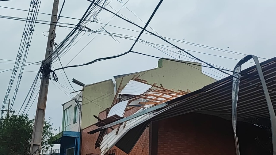 Outra situação parecida foi registrada na Avenida Maripá, no cruzamento com a Rua Riachuelo, região da Vila Operária, onde mais uma estrutura similar foi arrancada e ficou totalmente retorcida. A estrutura foi parar em cima de um hotel e danificou alguns cabos de energia elétrica. Felizmente o prédio não conta com moradores no momento.
