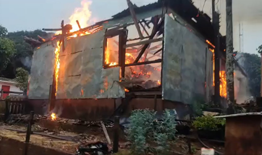 Um curto-circuito pode ter ocasionado o incêndio que destruiu o galpão. O proprietário tem seguro do local e da residência que fica na frente ao local do incêndio.