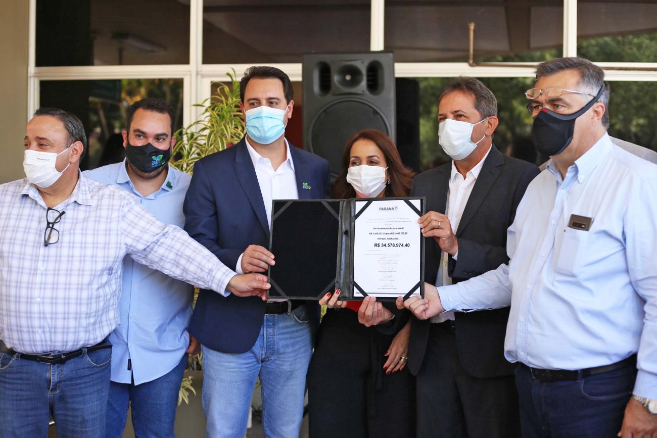 O governador Carlos Massa Ratinho Junior e o secretário de Estado da Saúde, Beto Preto, assinaram nesta sexta-feira (03) o novo contrato entre o Estado e o Hospital Costa Cavalcanti, em Foz do Iguaçu, ampliando o repasse mensal de R$ 2,8 milhões para R$ 3,4 milhões, o que garante a abertura de novos leitos de UTI neonatal e pediátrica.