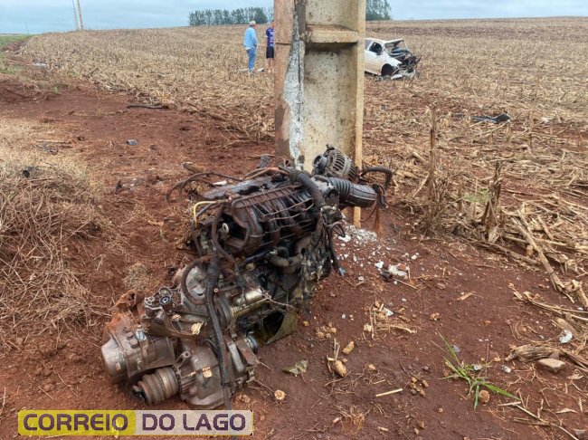 O acidente ocorreu após o condutor perder o controle da direção, despencando de um barranco na lateral da rodovia e colidindo contra um poste. Com o impacto, o veículo parou a cerca de 20 metros da pista e o motor foi arrancado na batida.