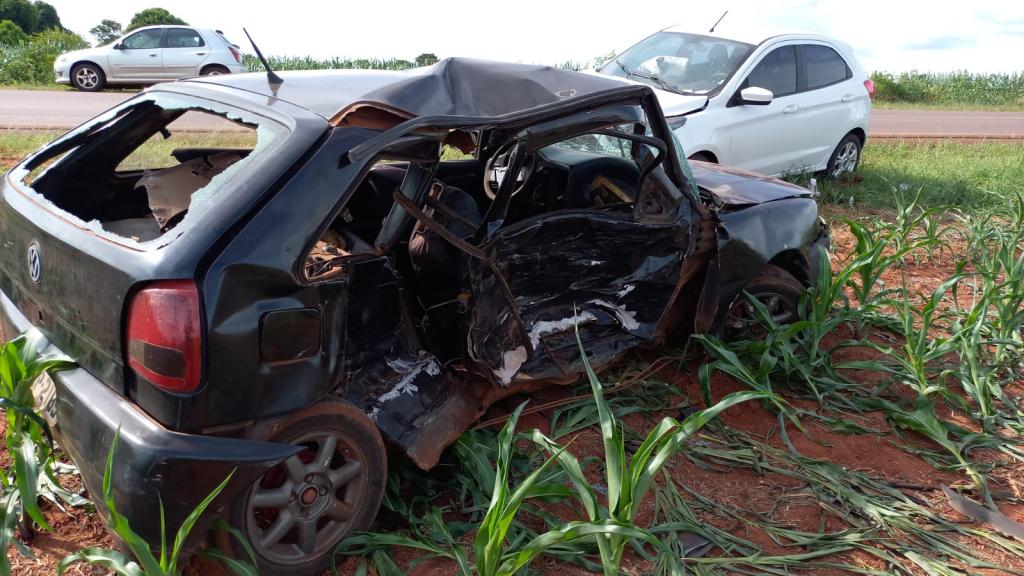 No momento do acidente o VW/Gol foi entrar à esquerda em uma estrada vicinal, quando o Ford/KA colidiu em sua lateral.