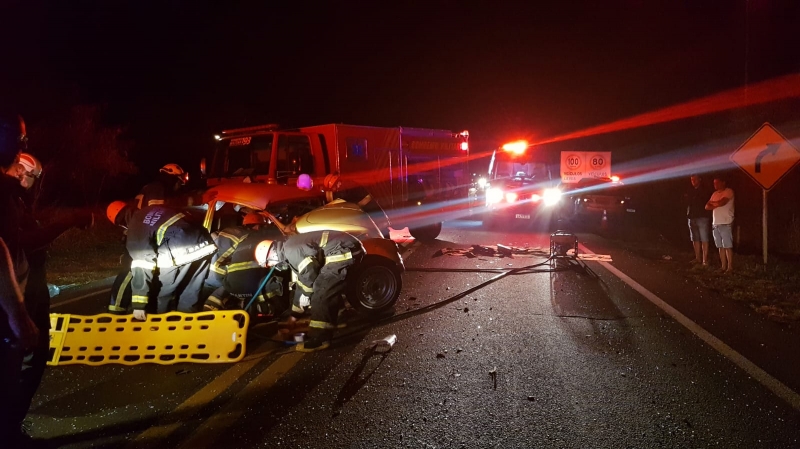 A colisão foi frontal e envolveu um VW/Fusca e um VW/Virtus. Umas das pessoas ficou em estado grave.