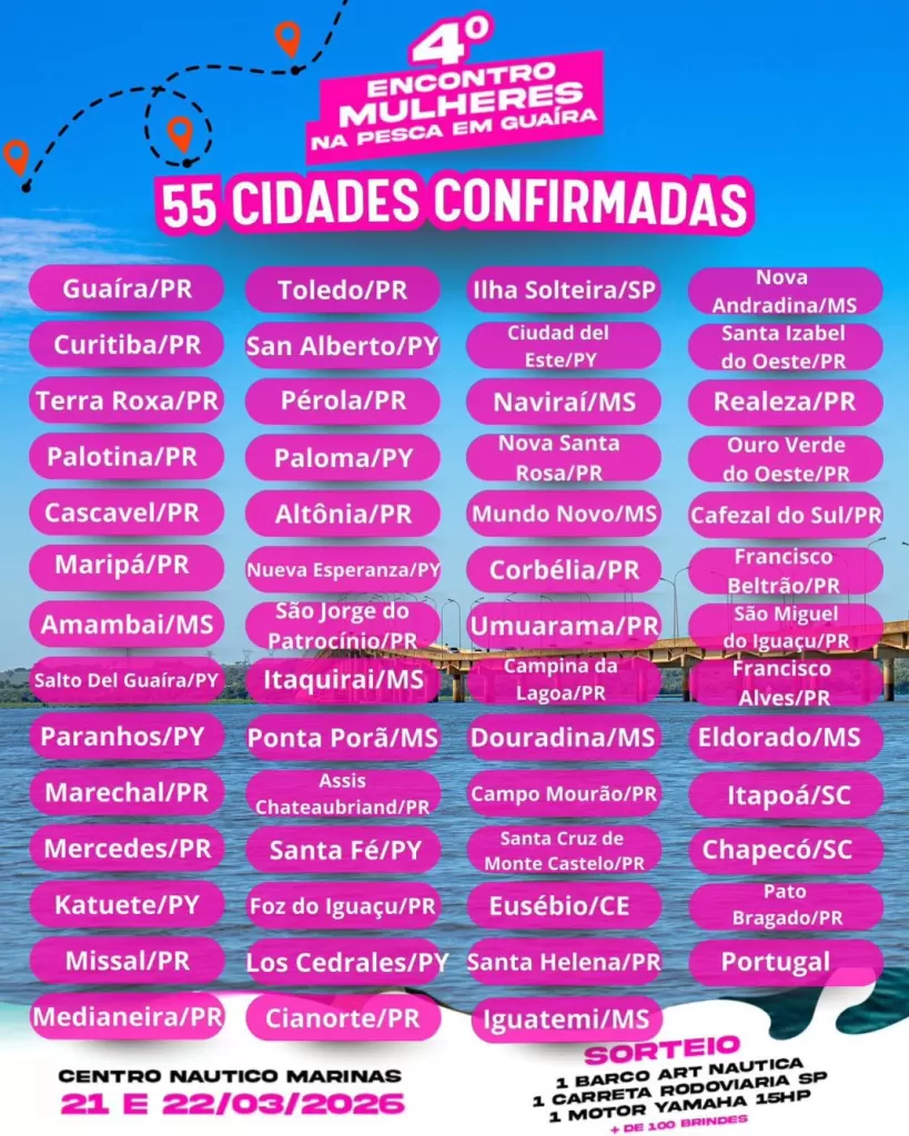 O 4º Encontro Mulheres na Pesca, realizado em Guaíra, reúne participantes de diversas regiões em uma programação que valoriza o protagonismo feminino, o turismo e a integração entre cidades.