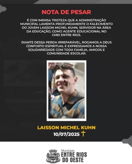 A prefeitura de Entre Rios emitiu uma nota de pesar pelo falecimento do jovem: