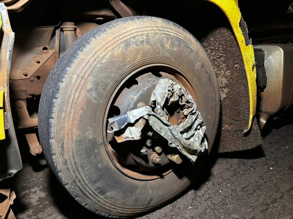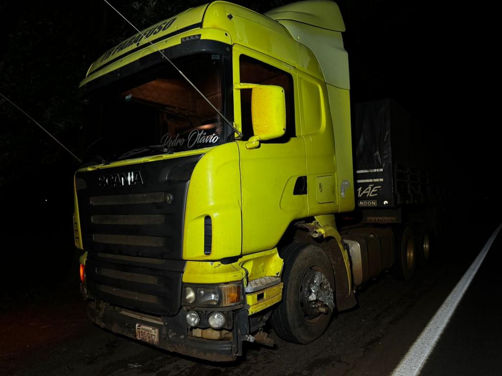 Um caminhão Scania com placas do Paraguai, acoplado a uma carreta; um Chevrolet Vectra de Maripá; e um Fiat Uno com placas de Palotina, conduzido pelo idoso e no banco do passageiro sua esposa, também uma idosa.