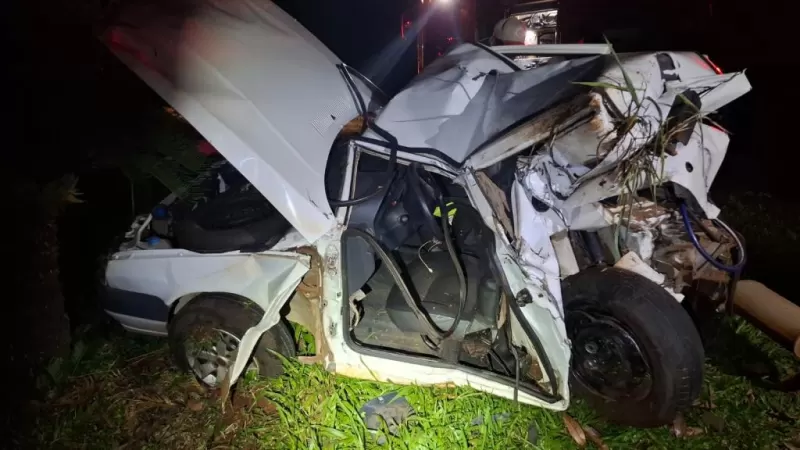 Um homem de 42 anos perdeu a vida após um grave acidente envolvendo dois veículos na PR-317, em São Pedro do Iguaçu, deixando como cenário um carro de Toledo completamente destruído às margens da rodovia.
