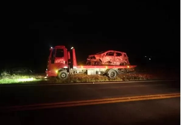 Ford Ecosport foi destruído por incêndio na noite de segunda-feira (29), na PR-364, em Palotina. A ocorrência foi registrada por volta das 20 horas, no quilômetro 602 da rodovia.