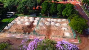 Sem visitantes em decorrência das restrições da pandemia, obras no balneário de Santa Helena estão “a todo vapor”: quadra de areia recebe melhorias (Foto: Divulgação)