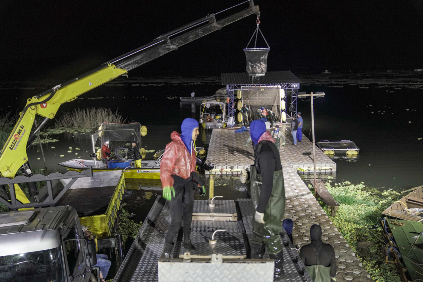 A Unidade de Pesquisa tem 29 tanques-redes, sendo 20 de 25m³ e nove de 7m³. Para fazer a retirada de todas as tilápias, são utilizados puçás e até um guindaste que leva os peixes para dois caminhões. Todo o trabalho leva cerca de seis horas. O lote de peixes será beneficiado na unidade da Copacol em Nova Aurora e, depois, distribuído na região de forma gratuita.