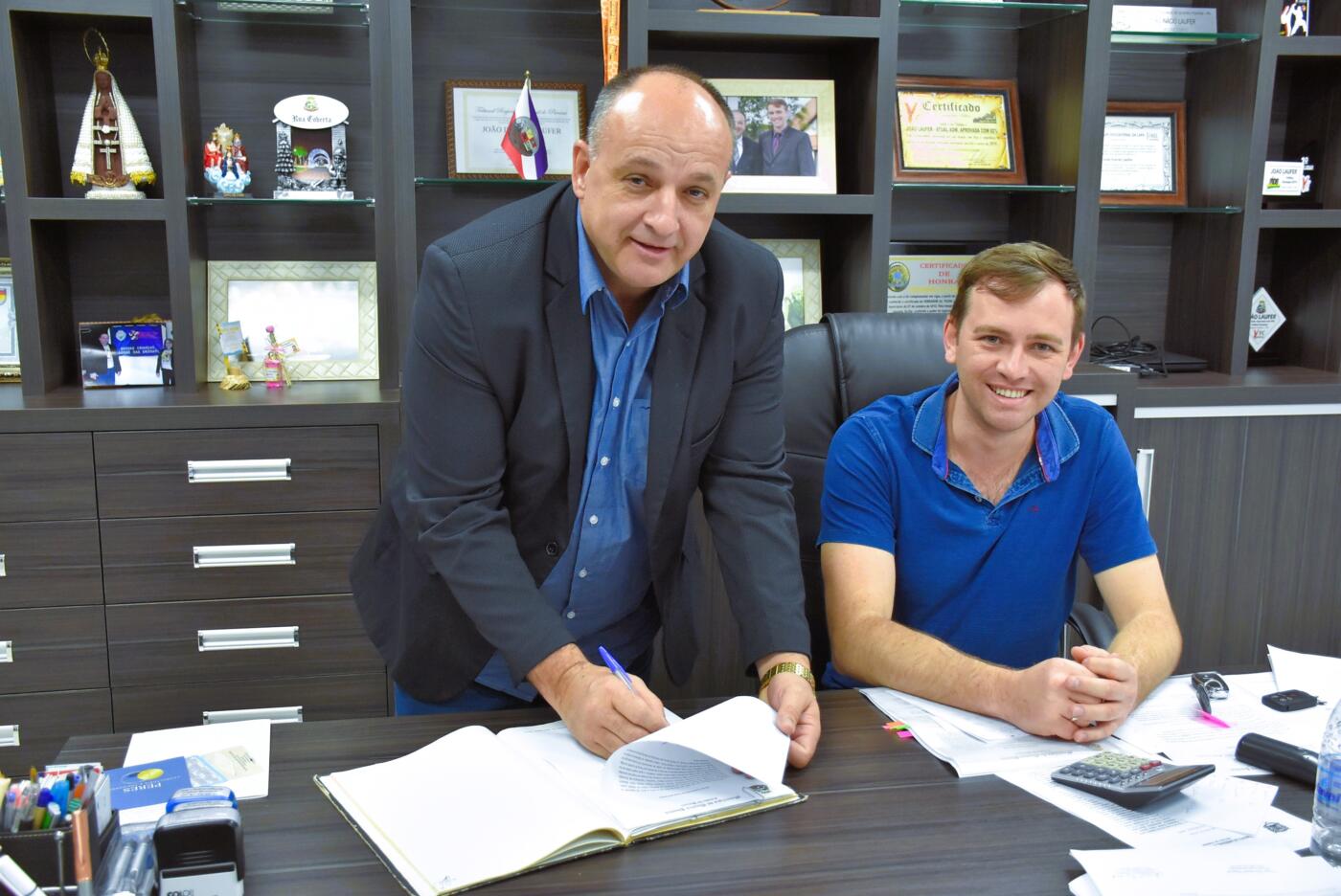 Após período de férias, João Laufer reassumiu no sábado (30) a Prefeitura de Quatro Pontes. O vice-prefeito, Tiago Hansel, ficou à frente do Executivo por 20 dias. A troca de comando ocorreu no gabinete, mediante a assinatura de documentos.