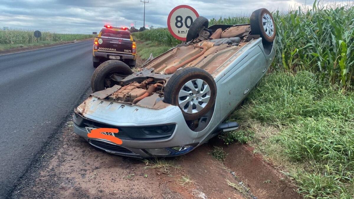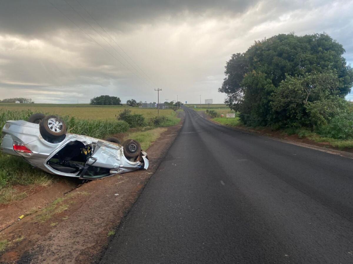 Um veículo Prisma transitava sentido Itaipulândia quando o condutor teria perdido o controle do carro, que saiu da pista e colidiu em um barranco. Em seguida, o veículo capotou.