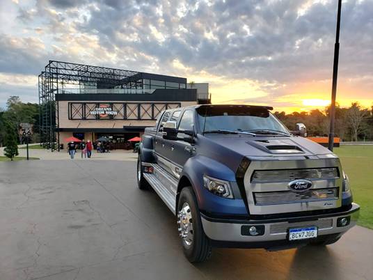 Agora, quem visitar Foz do Iguaçu poderá fazer um passeio exclusivo na maior picape do Brasil, a F-Maxx, avaliada em R$ 1,7 milhão. Inspirada nos Super Trucks norte-americanos, tem 7,5 metros de comprimento, 2,5 metros de altura e largura, pesa seis toneladas e já está em exibição no complexo Dreams Park Show, em Foz do Iguaçu.