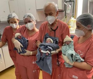 Um jovem casal haitiano vivenciou nesta semana a reta final de uma tripla gestação. As crianças chegaram ao mundo na quinta-feira (13), no Hospital Bom Jesus, em Toledo, sob os cuidados da equipe médica formada pelo médico João Pedro e pelas obstetras Eduarda Bombonatto da Silva e Amanda Gabriela Giusti Bandeira, além da berçarista Alaídes e das enfermeiras Eliane Fátima de Melo e Laura Ceron. A mãe estava internada, pois a gestação era classificada como de alto risco e havia necessidade de cuidados hospitalares.