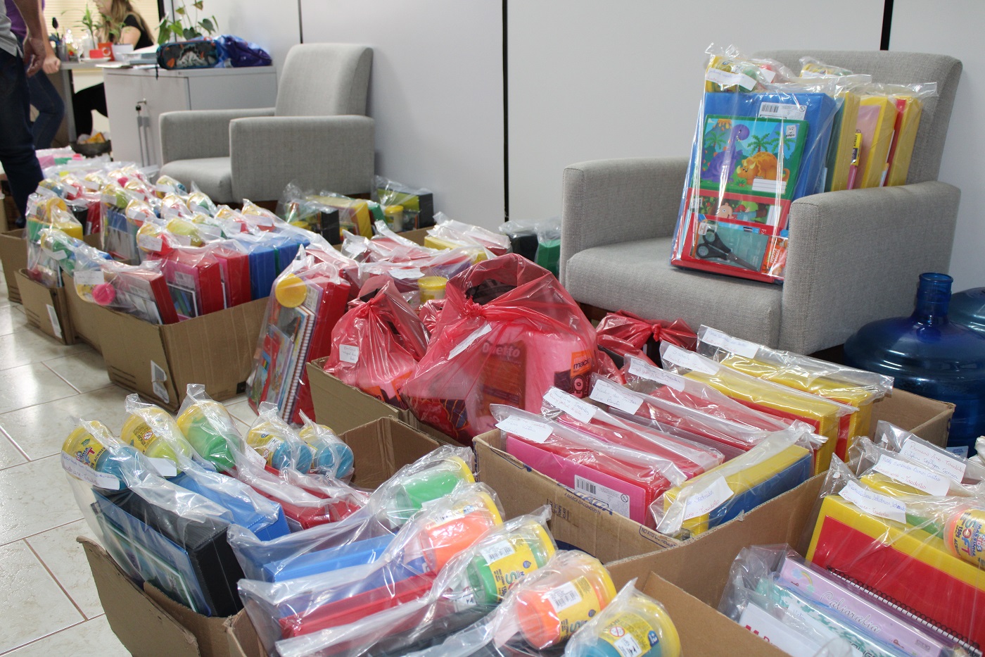 Os kits repassados contemplam parte dos materiais solicitados pelas escolas para o retorno às aulas, como: lápis de cor, estojos, massinha de modelar, caderno, entre outros. Algumas crianças também foram contempladas com mochilas e uniformes.
