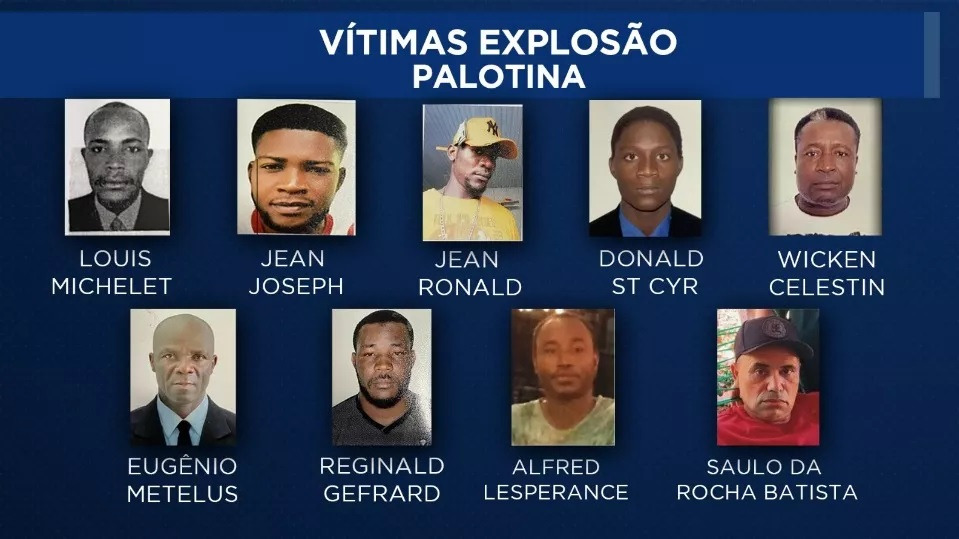 | Wicken Celestin, 55 anos Michelet Louis, de 41 anos; Jean Michee Joseph, de 29 anos; Jean Ronald Calix, de 27 anos; Donald ST Cyr, de 24 anos; Alfred Lesperance, de 44 anos; Eugênio Metelus, de 52 anos; Reginald Gefrard, de 30 anos | Saulo da Rocha Batista, de 53 anos. |