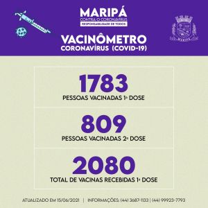 O Município de Maripá começa a vacinar a partir desta quarta-feira (16), pessoas sem comorbidades com 54 anos ou mais. Uma nova remessa de vacinas deve chegar ao município ainda hoje, com a previsão de 105 novas doses, sendo 10 doses da Coronavac/Butantan e 95 doses da AstraZeneca/Fiocruz.