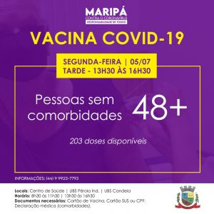 O Município de Maripá retirou nesta segunda-feira (5) uma nova remessa de vacinas contra a Covid-19. O novo lote contém 203 doses, sendo 155 delas da AstraZeneca/Fiocruz e 48 doses da Pfizer. Com o quantitativo, Maripá começa a vacinar a população geral acima dos 48 anos.