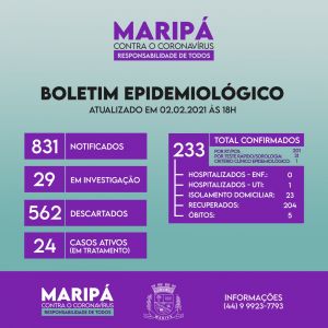 Desde o início da pandemia, em março de 2020, Maripá soma 831 casos notificados da doença, sendo 233 deles confirmados, 562 descartados e cinco óbitos.