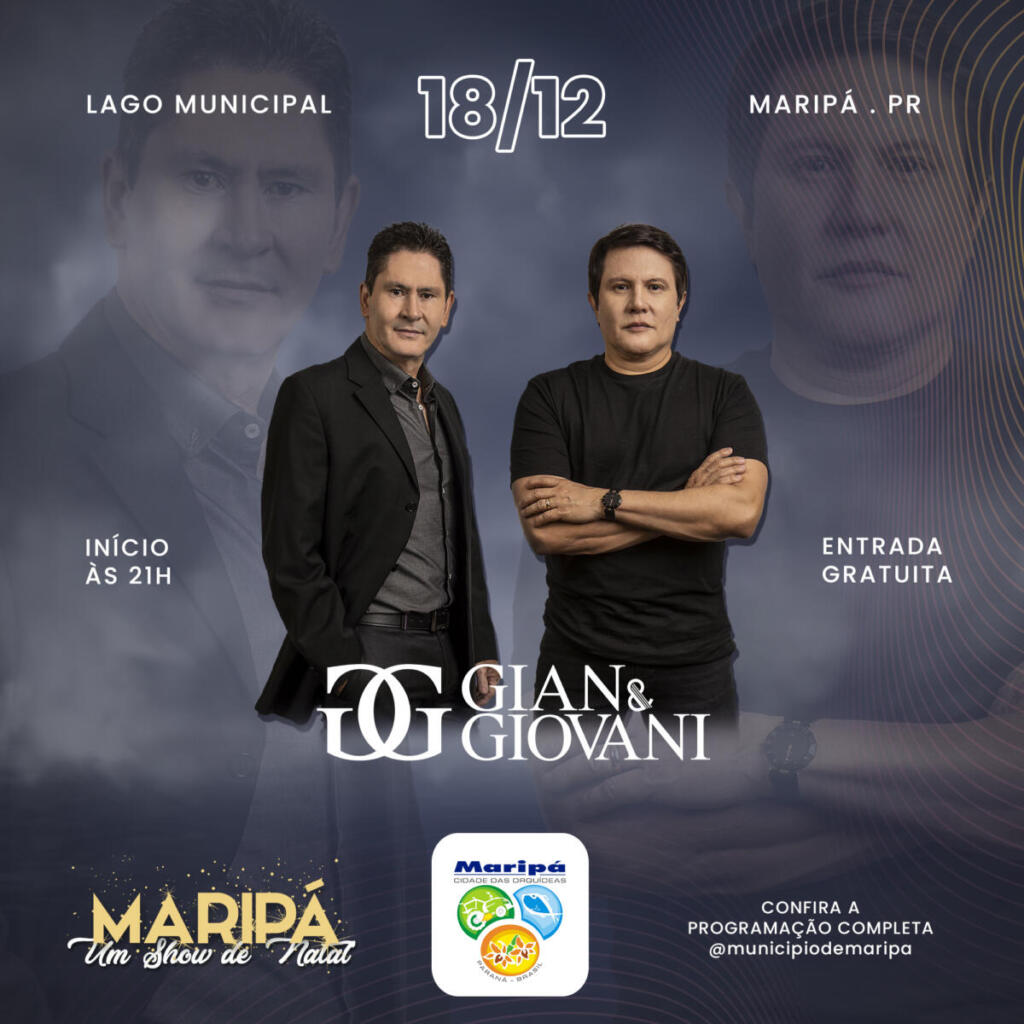 A programação de fim de ano em Maripá, Um Show de Natal conta com grandes atrações de 10 a 18 de dezembro. Serão nove noites de apresentações no Lago Municipal e nos distritos. Para encerrar o evento com chave de ouro, a dupla sertaneja Gian e Giovani subirá ao palco às 21 horas do dia 18, no Lago Municipal com entrada gratuita.