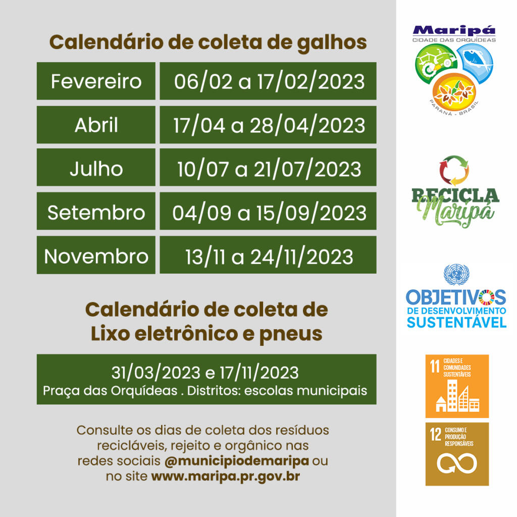 A ação faz parte do programa Recicla Maripá e tem o objetivo de manter a cidade limpa, organizada e dar a destinação correta aos materiais. Àqueles que desrespeitarem as datas estão sujeitos à aplicação de multa.