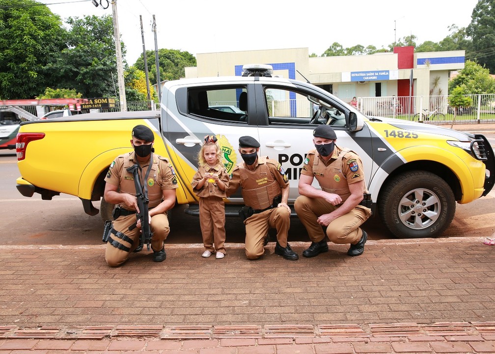 Segundo o pai, ao saber do sonho de Maria Valentina, a equipe da PM, que atua na cidade vizinha a Missal, fez questão de presentear a menina com a mini farda, na tarde de terça-feira (9).