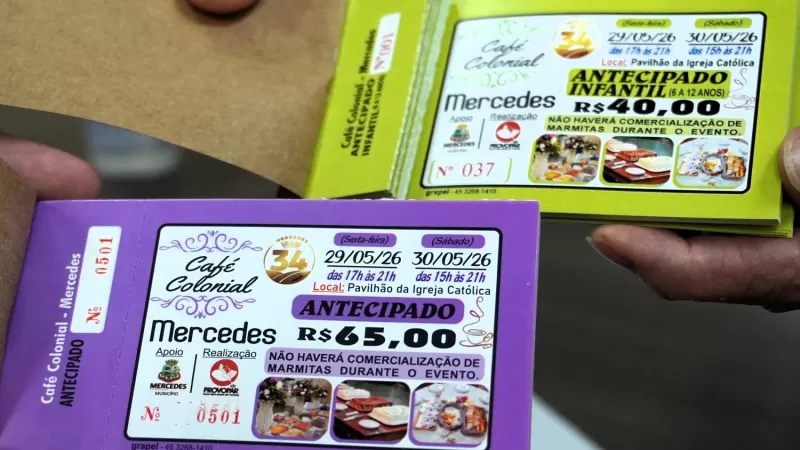 Começaram nesta quinta-feira (16) as vendas antecipadas de fichas para o Café Colonial de Mercedes, considerado o melhor da região e um dos eventos mais aguardados da programação de 34 anos do município. A edição deste ano acontece nos dias 29 e 30 de maio, no Pavilhão da Comunidade Católica, reunindo mais de 60 pratos típicos.