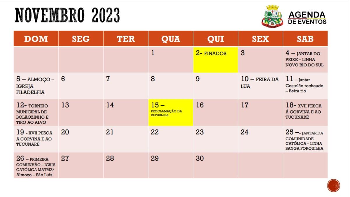 A Secretaria de Esporte e Lazer de Mercedes divulgou nesta terça-feira (24), a Agenda de Eventos de 2023 do Município de Mercedes. As datas foram definidas em reunião realizado no final do ano passado, junto de associações, entidades e clubes.