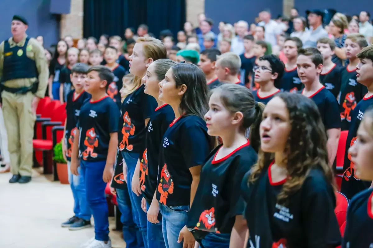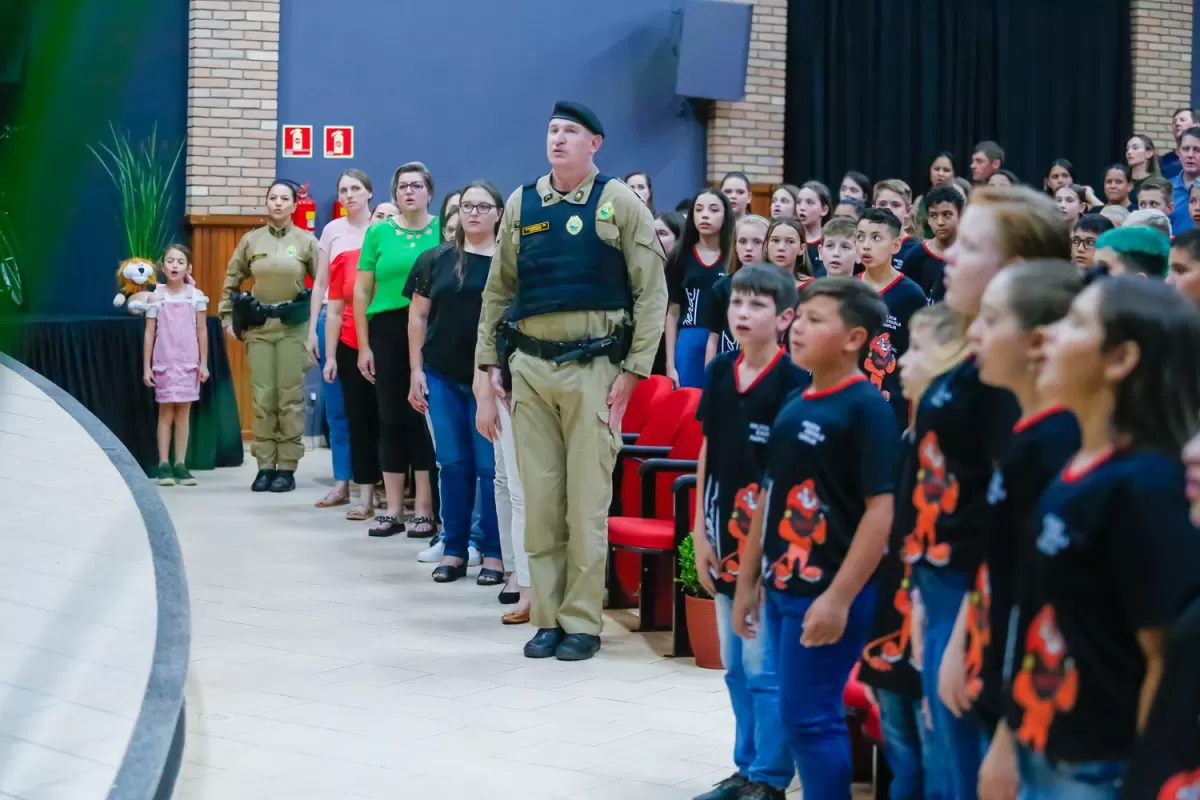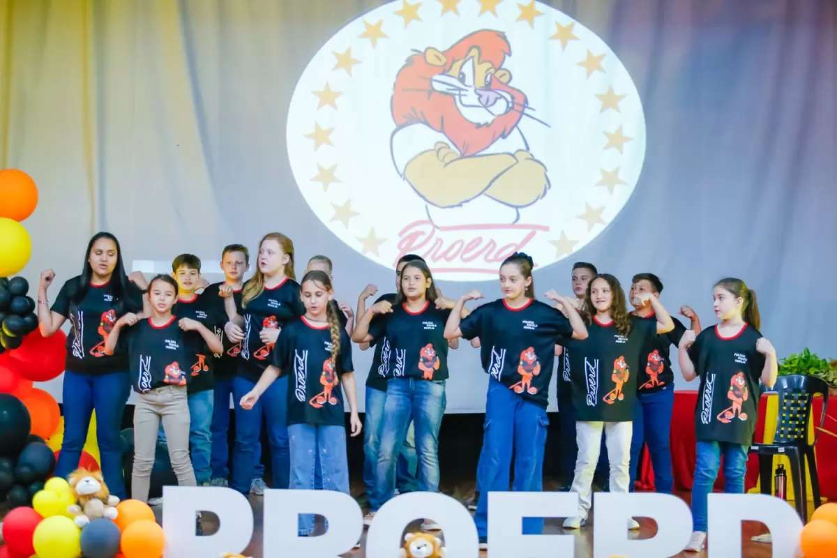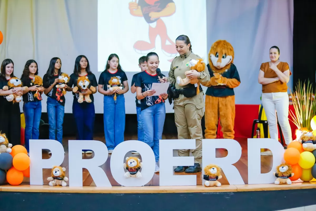 Durante a cerimônia, os estudantes fizeram o juramento do Proerd e apresentaram atividades culturais, com leitura, canto e dança da música oficial do programa. O mascote Leão Daren também participou, animando o público e simbolizando o compromisso do projeto com a prevenção.