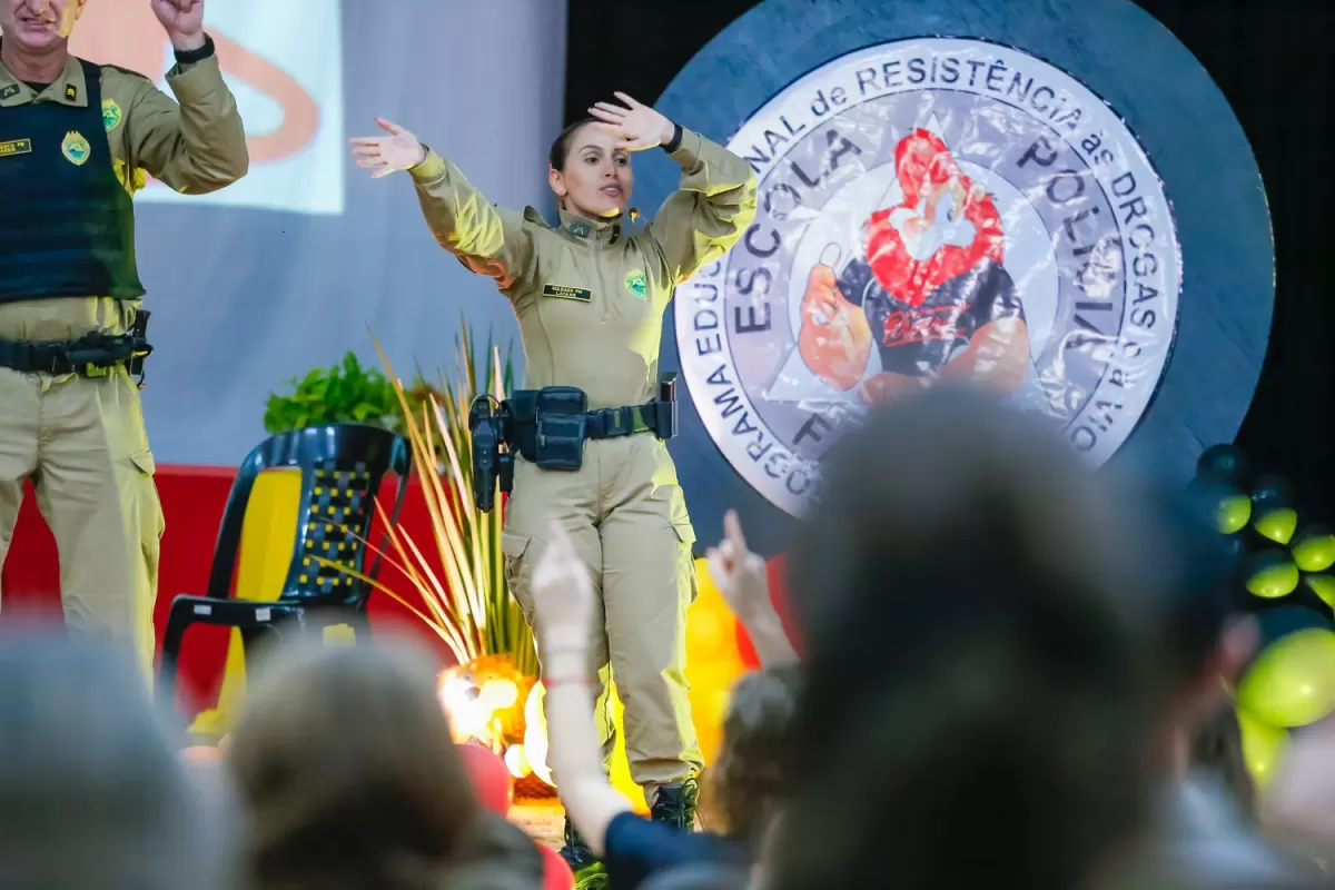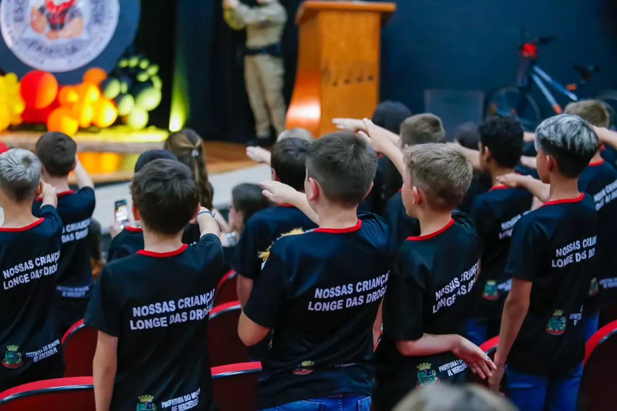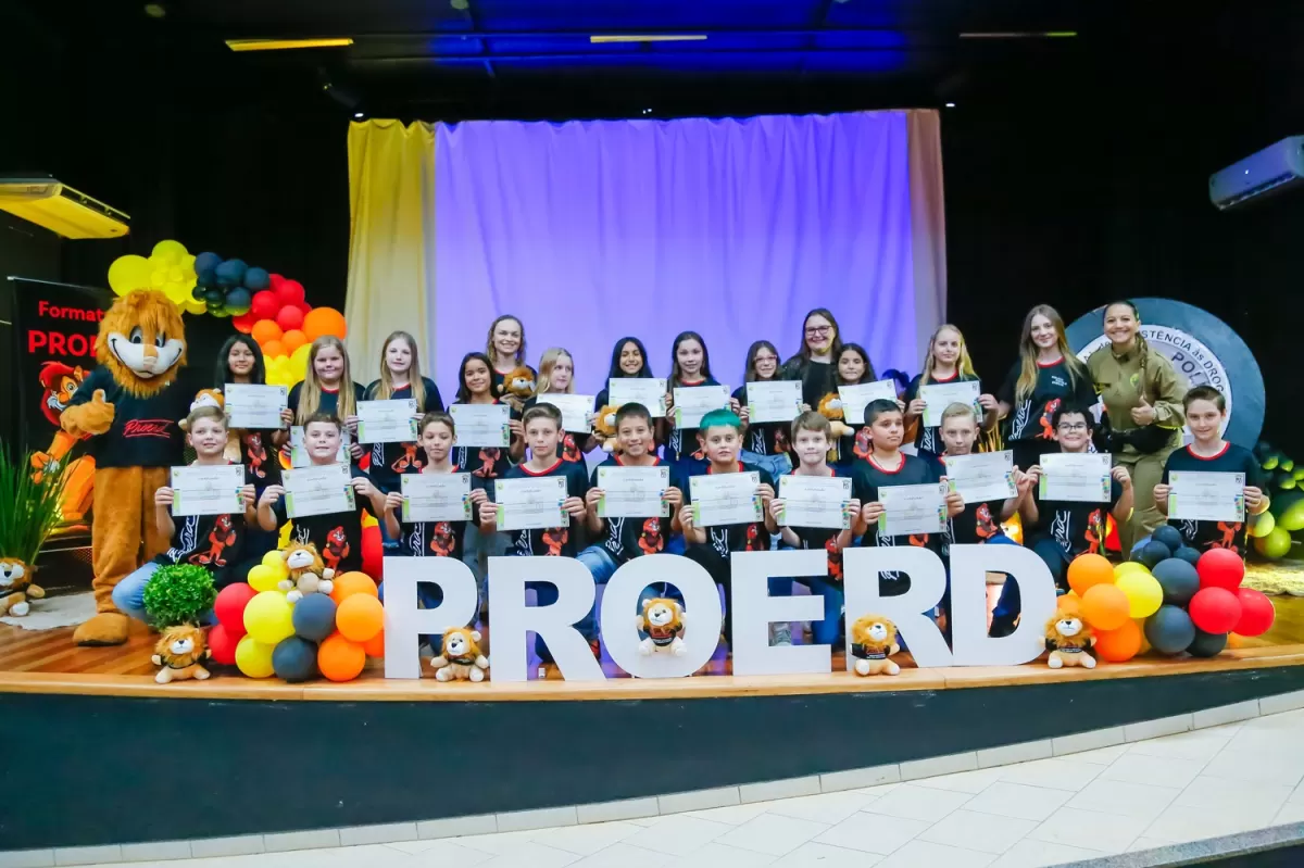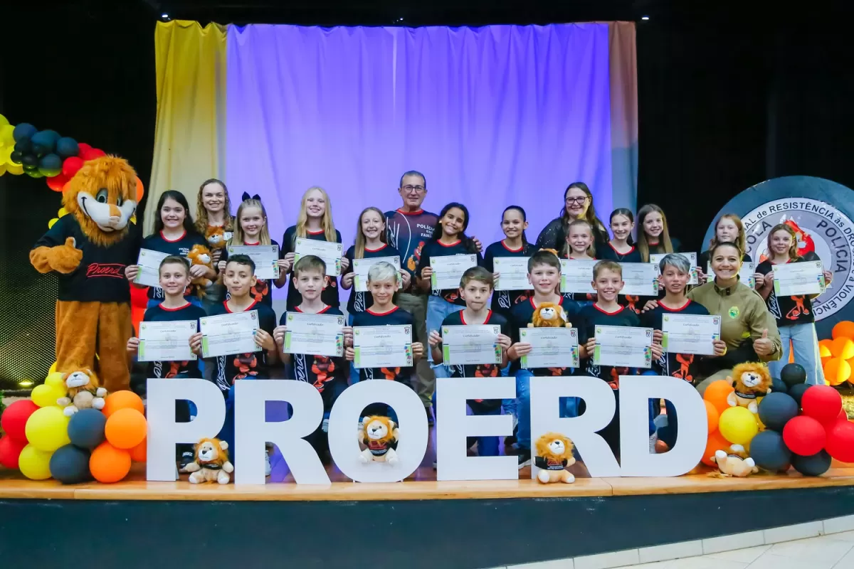 Durante a cerimônia, os estudantes fizeram o juramento do Proerd e apresentaram atividades culturais, com leitura, canto e dança da música oficial do programa. O mascote Leão Daren também participou, animando o público e simbolizando o compromisso do projeto com a prevenção.