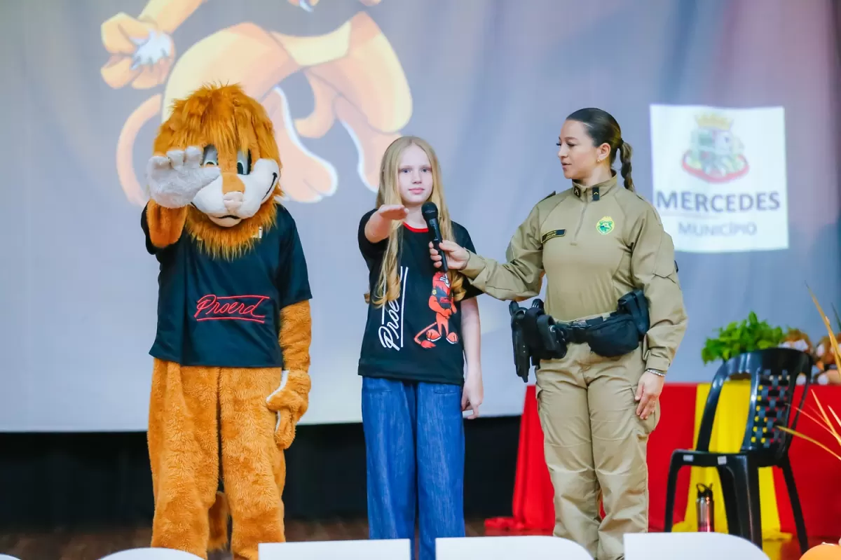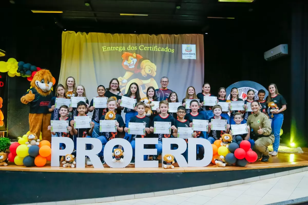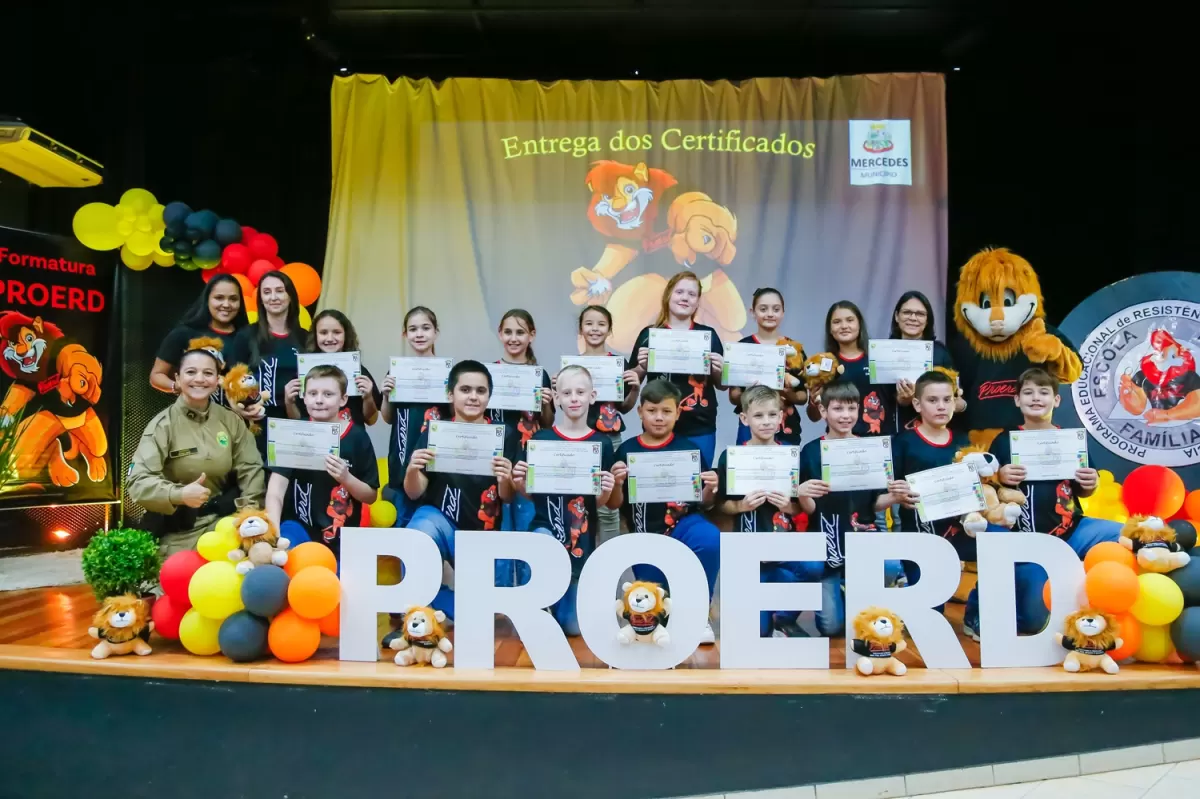 Destacando a importância da educação preventiva no combate ao uso de drogas, foi realizada na noite desta terça-feira (11), na Casa da Cultura de Mercedes, a formatura do Programa Educacional de Resistência às Drogas e à Violência (Proerd). A solenidade contou com a participação de 85 alunos dos 5º anos das escolas municipais Tiradentes e José de Alencar.