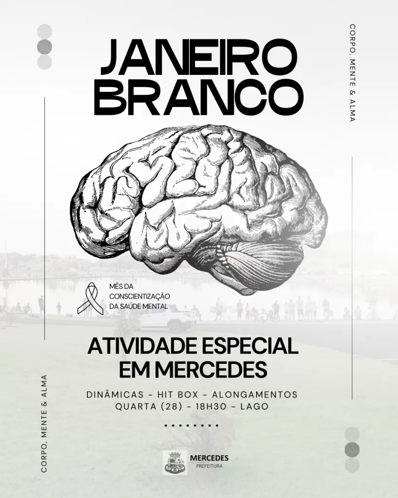 A Secretaria de Saúde de Mercedes convida a população para participar de uma atividade alusiva ao mês do Janeiro Branco, campanha voltada à conscientização sobre a importância da saúde mental.