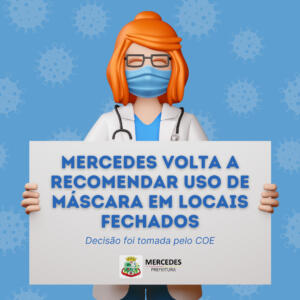 A Prefeitura de Mercedes voltou a recomendar o uso de máscaras contra a Covid-19 em ambientes fechados no município. Com isso, o uso não é obrigatório. A medida acompanha a decisão do governo estadual, que voltou a recomendar o uso do equipamento de proteção individual.