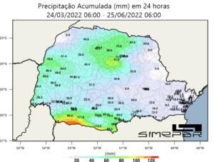 Na quinta-feira o Simepar emitiu um alerta para temporais nas próximas 48 horas no Paraná – ou seja, com vigência até esta sexta-feira (confira a matéria clicando aqui). O meteorologista indica que, diferente dos temporais registrados, as chuvas de hoje devem seguir calmas.