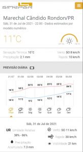 Para a próxima semana em Marechal Cândido Rondon, as temperaturas não devem baixar dos 9ºC, com máximas de 26ºC. Não há previsão de chuva para a região.
