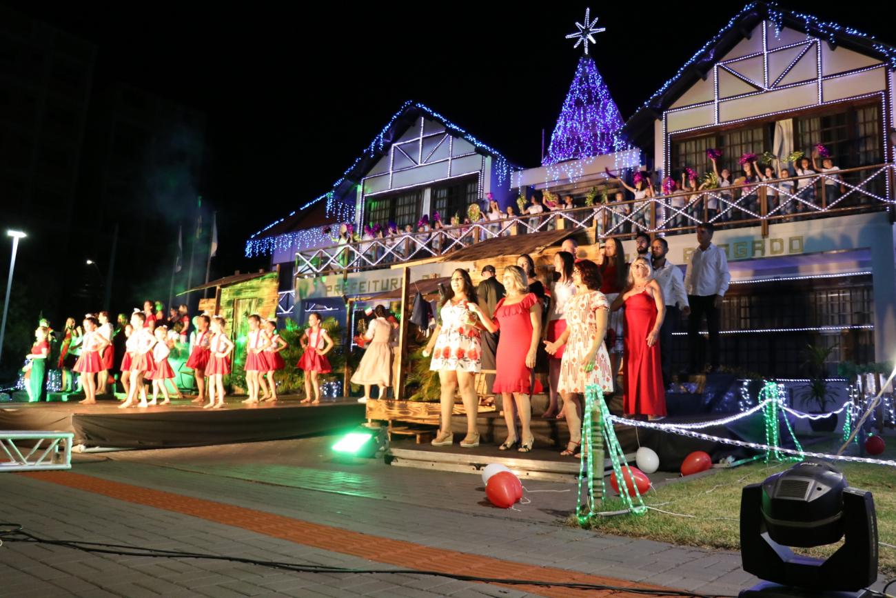Nesta noite a prefeitura com sua arquitetura germânica recebe todos os artistas do centro cultural Arte e Encanto, torna-se ainda mais encantadora e iluminada pelas lindas vozes do teatro, corais infanto-juvenil, juvenil, adulto, terceira idade e a orquestra do Centro Cultural Arte e Encanto. Tecnologia e palcos instalados à frente da prefeitura completaram o cenário.