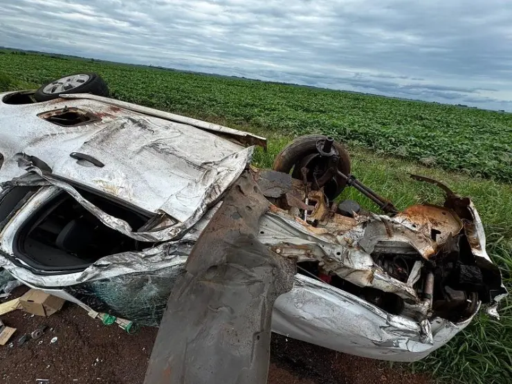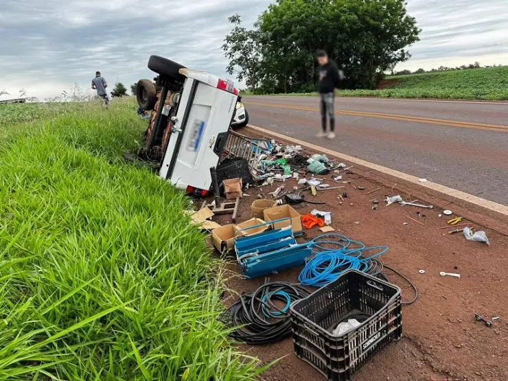 Após a colisão a Montana capotou e parou de lado nas margens da rodovia, no veículo tinha dois trabalhadores e apenas o motorista resultou com ferimentos leves.