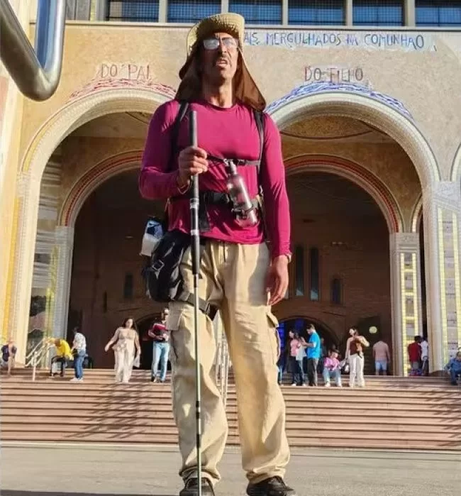 Ele iniciou a peregrinação no dia 20 de julho, às 6h30, e chegou ao destino no dia 9 de agosto, às 15h. A chegada, registrada em vídeo, mostra o peregrino emocionado ao entrar no pátio da basílica, principal centro de peregrinação católica do Brasil.