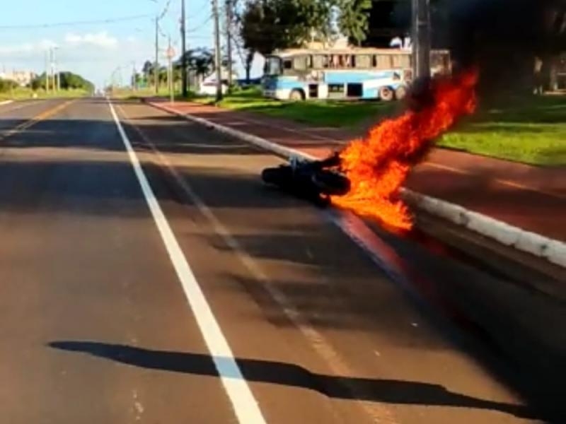 Com a batida, a BMW pegou fogo. O condutor teve ferimentos moderados. Já o condutor da moto paraguaia teve ferimentos gravíssimos.