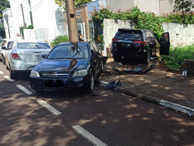 Desgovernada, a SW4 atingiu um VW/Gol e um Astra, que estavam estacionados, e invadiu um terreno. O Astra ainda atingiu um GM/Prisma, que também estava estacionado.