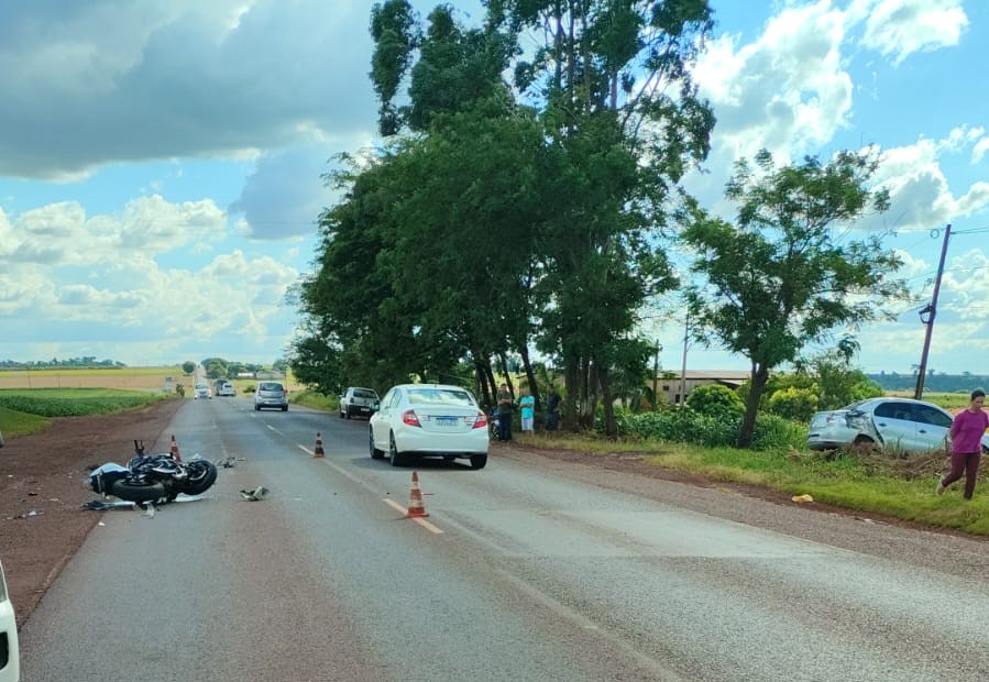 Um grave acidente envolvendo uma moto e um carro resultou em morte, na tarde deste sábado (13) na PR-239, em frente ao motel Athenas próximo a Assis Chateaubriand.