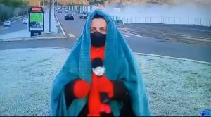 Havia em cena outro ingrediente curioso: a repórter da Rede Massa, Cristiane Guimarães, narrou os fatos pisando na geada e protegida por um cobertor.