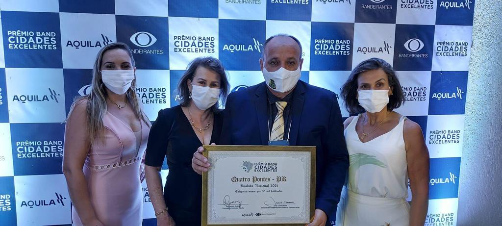 Por excelência na gestão pública, mais uma vez Quatro Pontes é destaque, mas desta vez na etapa nacional. O município ficou entre as três melhores do Brasil no Prêmio Band Cidades Excelentes, promovido pelo Grupo Bandeirantes de Comunicação em parceria com o Instituto Aquila. A premiação é na categoria Índice de Gestão Municipal Aquila (IGMA) geral, menor que 30 mil habitantes, com a conquista do 2º lugar. O vencedor foi Augusto Pestana (RS) e em 3º lugar ficou Peritiba (SC).